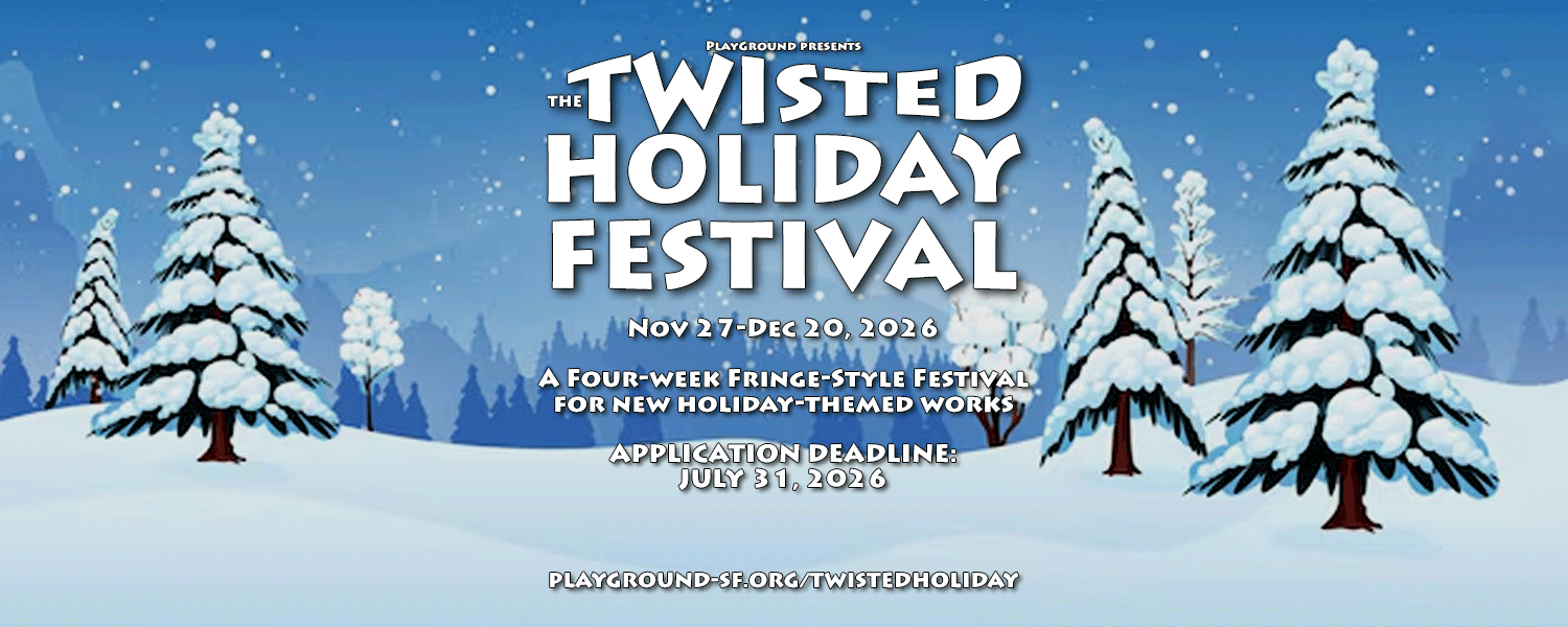 Applications are now being accepted for PlayGround’s first annual TWISTED HOLIDAY FESTIVAL, November 27-December 20, at Potrero Stage and simulcast. This four-week “fringe style” new works festival will feature up to 20 productions and 60 performances of new holiday-themed works (with a twist!) by talented theatre artists from across the country including PlayGround artists based in the Bay Area, Los Angeles, New York and Chicago. PlayGround’s Twisted Holiday Festival welcomes applications from seasoned theatre professionals, first-time producers, and all-star performers in every aspect of live performance, direction, and choreography. Productions will be presented for 3 performances at Potrero Stage (18th Street @ Arkansas), detailed schedule below. For more information or to reserve in-person or online tickets, visit https://playground-sf.org/twistedholiday.