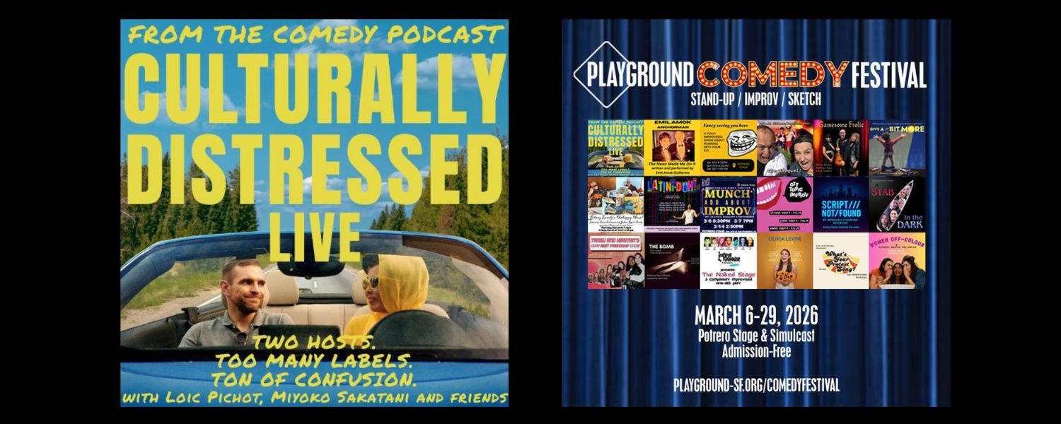 MIYOKO SAKATANI will performing with her creative partner Loic Pichot in “Culturally Distressed Live” on March 27-29th on the SF Potrero Stage and live streaming for the First Annual PlayGround Comedy Festival! Miyoko, a straight Japanese American baby boomer and Loic, a French American gay millennial are co-hosts of the Culturally Distressed Podcast and will be bringing their podcast to life with sketch comedy and stand up routines exploring various themes surrounding the complexities of cultural identity and personal relationships. TICKETS. @playlandproductions