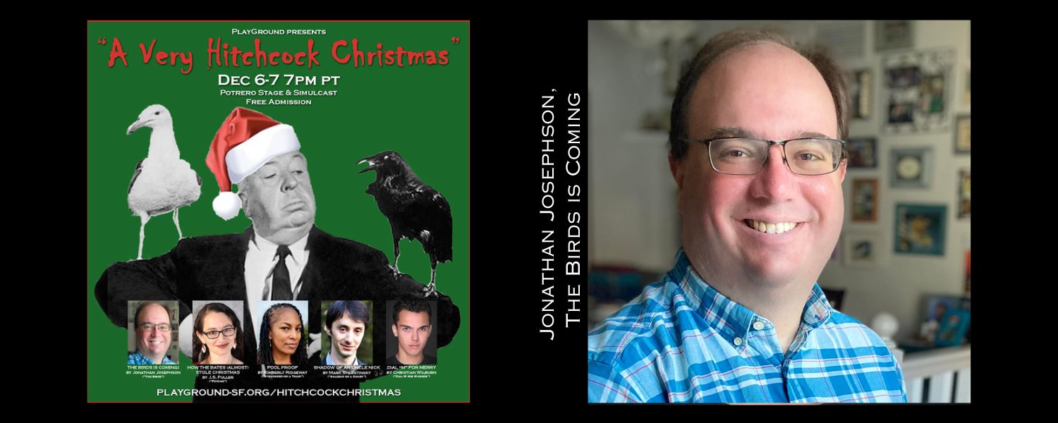 Here we are – the final Playwright Spotlight Series Holiday Edition, of 2025! Today we’re featuring PlayGround-LA alum and PlayGround Directing of Marketing and Communications Jonathan Josephson and his play The Birds is Coming (Inspired by The Birds), one of five plays being presented as a part of PlayGround’s 4th annual A Very Hitchcock Christmas, running at Potrero Stage and Simulcast, December 6-7 at 7pm. Advance reservations are required: visit playground-sf.org/hitchcockchristmas for details.