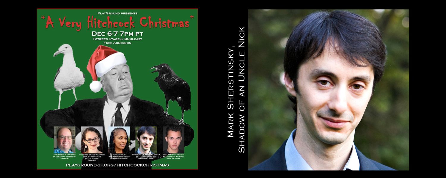 and his play Shadow of an Uncle Nick (Inspired by Shadow of a Doubt), one of five plays being presented as a part of PlayGround’s 4th annual A Very Hitchcock Christmas, running at Potrero Stage and Simulcast, December 6-7 at 7pm.  Advance reservations are required: visit playground-sf.org/hitchcockchristmas for details.